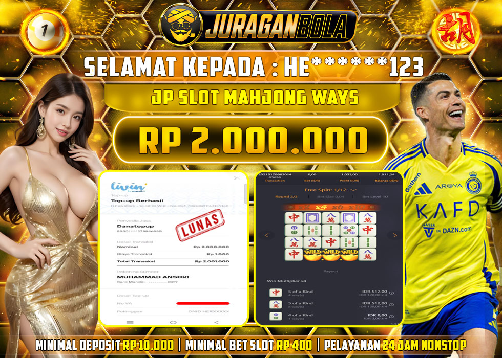 Selamat kepada user id: HE******123 telah berhasil mendapatkan kemenangan pada permainan MAHJONG WAYS dengan kemenangan sebesar Rp.2.000.000, Setelah mengisi formulir withdraw dengan kurang waktu 3-10 menit pihak JURAGANBOLA sudah melakukan transfer kepada pemilik userid dan dana sudah dapat dicairkan oleh pemenang. Bukti pembayaran yang kami berikan merupakan bukti pembayaran yang SAH / VALID yang langsung didapatkan melalui tanda transfer transaksi dari bank resmi indonesia.