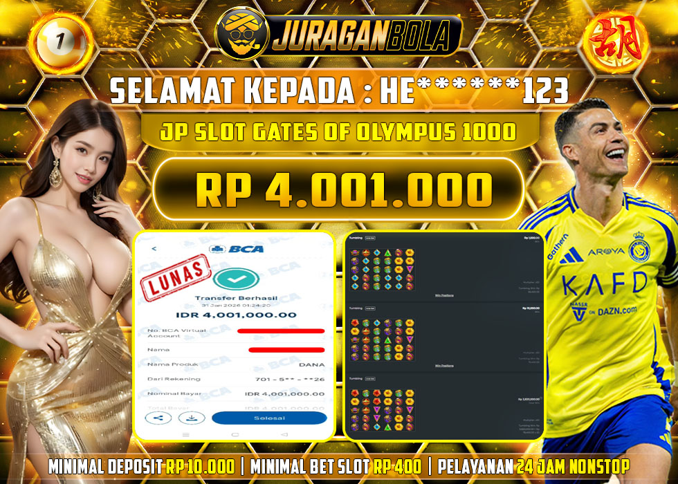 Selamat kepada user id: HE******123 telah berhasil mendapatkan kemenangan pada permainan GATES OF OLYMPUS 1000 dengan kemenangan sebesar Rp.4.001.000, Setelah mengisi formulir withdraw dengan kurang waktu 3-10 menit pihak JURAGANBOLA sudah melakukan transfer kepada pemilik userid dan dana sudah dapat dicairkan oleh pemenang. Bukti pembayaran yang kami berikan merupakan bukti pembayaran yang SAH / VALID yang langsung didapatkan melalui tanda transfer transaksi dari bank resmi indonesia.