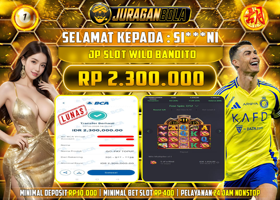Selamat kepada user id: SI***NI telah berhasil mendapatkan kemenangan pada permainan WILD BANDITO dengan kemenangan sebesar Rp.2.300.000, Setelah mengisi formulir withdraw dengan kurang waktu 3-10 menit pihak JURAGANBOLA sudah melakukan transfer kepada pemilik userid dan dana sudah dapat dicairkan oleh pemenang. Bukti pembayaran yang kami berikan merupakan bukti pembayaran yang SAH / VALID yang langsung didapatkan melalui tanda transfer transaksi dari bank resmi indonesia.