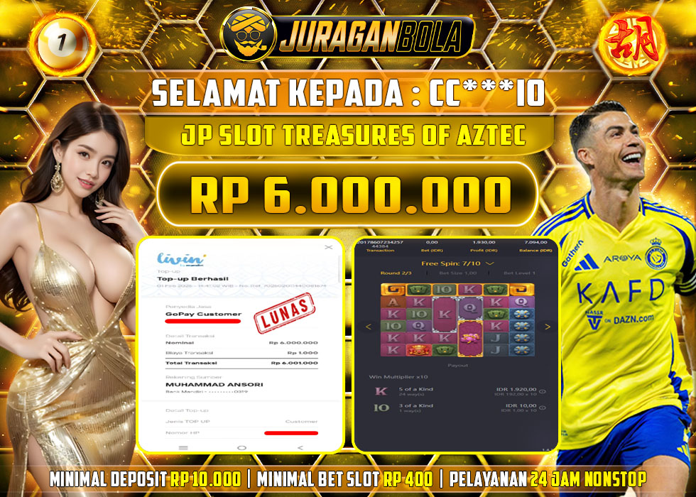 Selamat kepada user id: CC***IO telah berhasil mendapatkan kemenangan pada permainan TREASURES OF AZTEC dengan kemenangan sebesar Rp.6.000.000, Setelah mengisi formulir withdraw dengan kurang waktu 3-10 menit pihak JURAGANBOLA sudah melakukan transfer kepada pemilik userid dan dana sudah dapat dicairkan oleh pemenang. Bukti pembayaran yang kami berikan merupakan bukti pembayaran yang SAH / VALID yang langsung didapatkan melalui tanda transfer transaksi dari bank resmi indonesia.