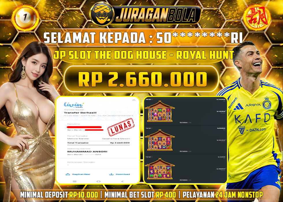Selamat kepada user id: SO********RI telah berhasil mendapatkan kemenangan pada permainan THE DOG HOUSE - ROYAL HUNT dengan kemenangan sebesar Rp.2.660.000, Setelah mengisi formulir withdraw dengan kurang waktu 3-10 menit pihak JURAGANBOLA sudah melakukan transfer kepada pemilik userid dan dana sudah dapat dicairkan oleh pemenang. Bukti pembayaran yang kami berikan merupakan bukti pembayaran yang SAH / VALID yang langsung didapatkan melalui tanda transfer transaksi dari bank resmi indonesia.
