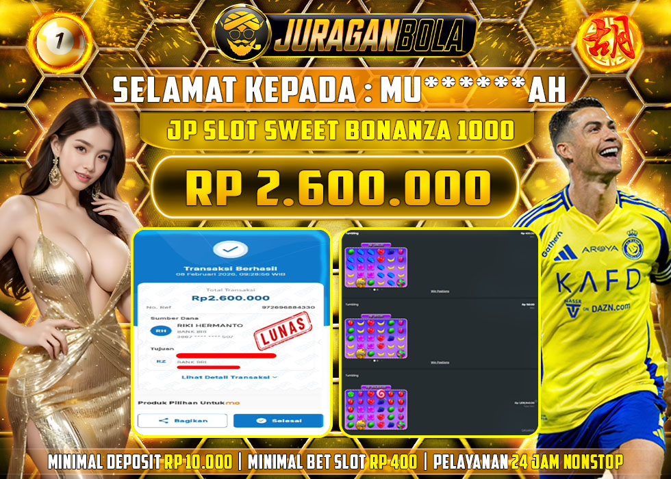 Selamat kepada user id: MU******AH telah berhasil mendapatkan kemenangan pada permainan SWEET BONANZA 1000 dengan kemenangan sebesar Rp.2.600.000, Setelah mengisi formulir withdraw dengan kurang waktu 3-10 menit pihak JURAGANBOLA sudah melakukan transfer kepada pemilik userid dan dana sudah dapat dicairkan oleh pemenang. Bukti pembayaran yang kami berikan merupakan bukti pembayaran yang SAH / VALID yang langsung didapatkan melalui tanda transfer transaksi dari bank resmi indonesia.
