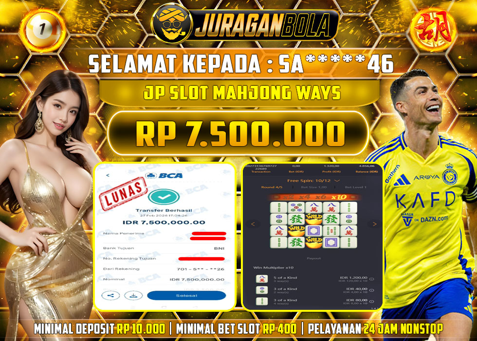 Selamat kepada user id: SA*****46 telah berhasil mendapatkan kemenangan pada permainan MAHJONG WAYS dengan kemenangan sebesar Rp.7.500.000, Setelah mengisi formulir withdraw dengan kurang waktu 3-10 menit pihak JURAGANBOLA sudah melakukan transfer kepada pemilik userid dan dana sudah dapat dicairkan oleh pemenang. Bukti pembayaran yang kami berikan merupakan bukti pembayaran yang SAH / VALID yang langsung didapatkan melalui tanda transfer transaksi dari bank resmi indonesia.