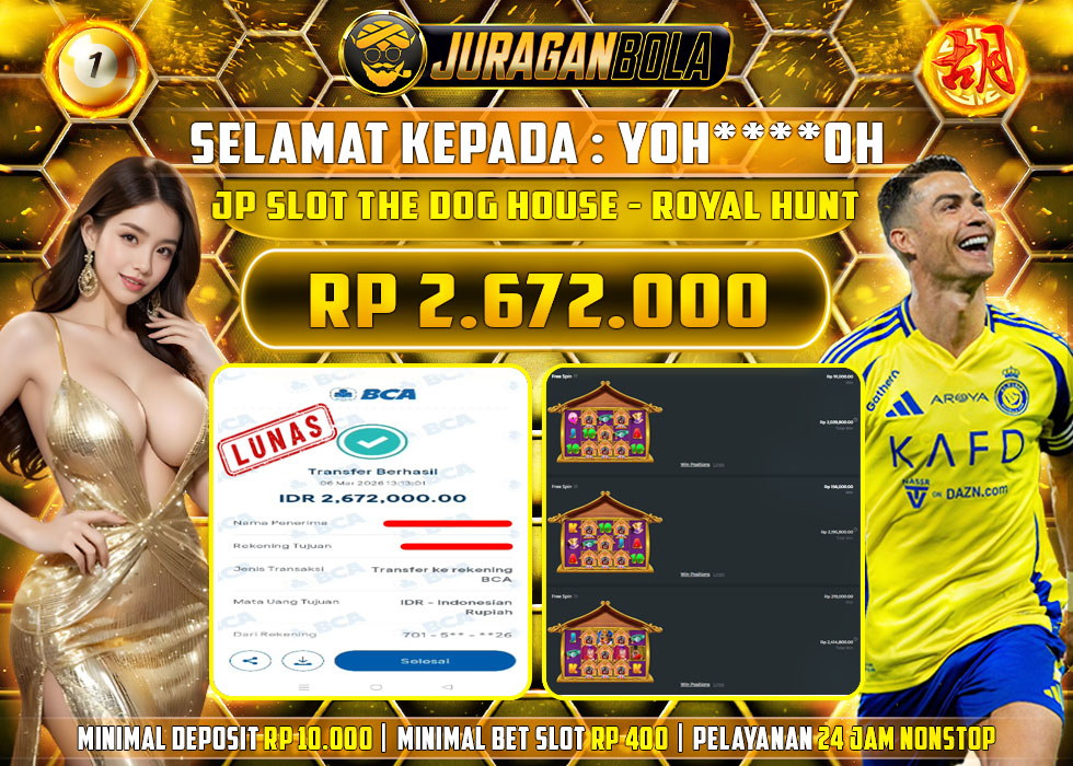 Selamat kepada user id: YOH****OH telah berhasil mendapatkan kemenangan pada permainan THE DOG HOUSE - ROYAL HUNT dengan kemenangan sebesar Rp. 2.672.000, Setelah mengisi formulir withdraw dengan kurung waktu 3-10 menit pihak JURAGANBOLA sudah melakukan transfer kepada pemilik userid dan dana sudah dapat dicairkan oleh pemenang. Bukti pembayaran yang kami berikan merupakan bukti pembayaran yang SAH / VALID yang langsung didapatkan melalui tanda transfer transaksi dari bank resmi indonesia.