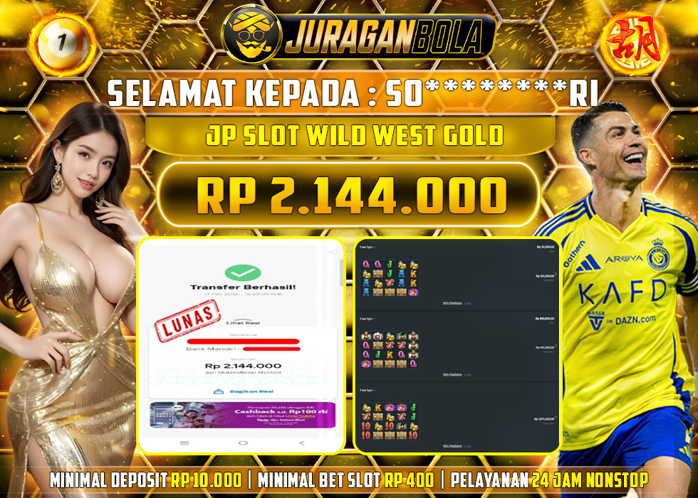 Selamat kepada user id: SO********RI telah berhasil mendapatkan kemenangan pada permainan WILD WEST GOLD dengan kemenangan sebesar Rp.2.144.000, Setelah mengisi formulir withdraw dengan kurang waktu 3-10 menit pihak JURAGANBOLA sudah melakukan transfer kepada pemilik userid dan dana sudah dapat dicairkan oleh pemenang. Bukti pembayaran yang kami berikan merupakan bukti pembayaran yang SAH / VALID yang langsung didapatkan melalui tanda transfer transaksi dari bank resmi indonesia.