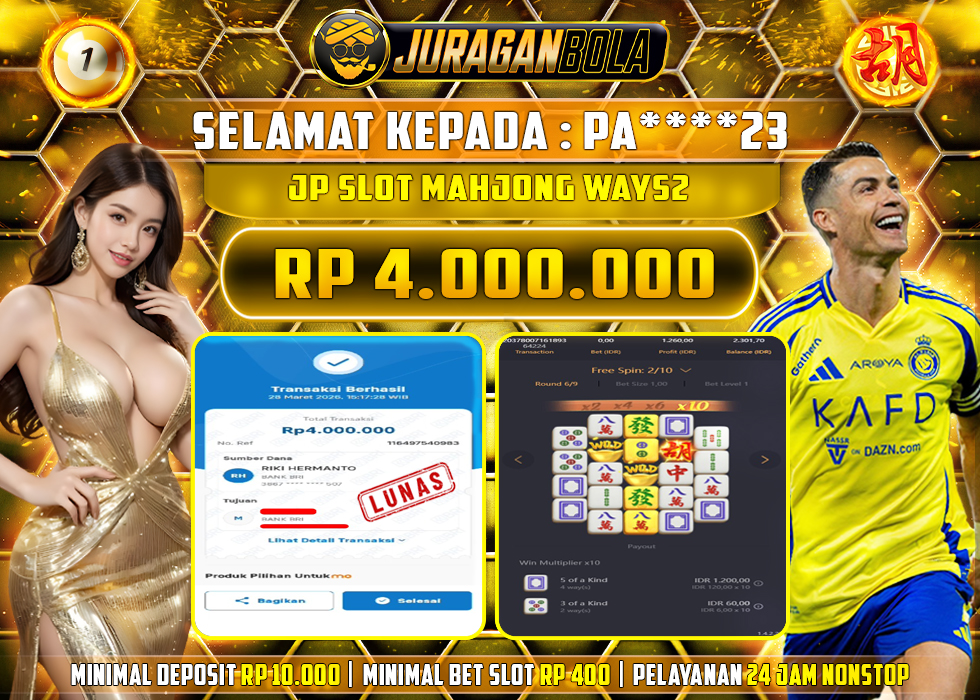 Selamat kepada user id: PA****23 telah berhasil mendapatkan kemenangan pada permainan MAHJONG WAYS2 dengan kemenangan sebesar Rp.4.000.000, Setelah mengisi formulir withdraw dengan kurang waktu 3-10 menit pihak JURAGANBOLA sudah melakukan transfer kepada pemilik userid dan dana sudah dapat dicairkan oleh pemenang. Bukti pembayaran yang kami berikan merupakan bukti pembayaran yang SAH / VALID yang langsung didapatkan melalui tanda transfer transaksi dari bank resmi indonesia.