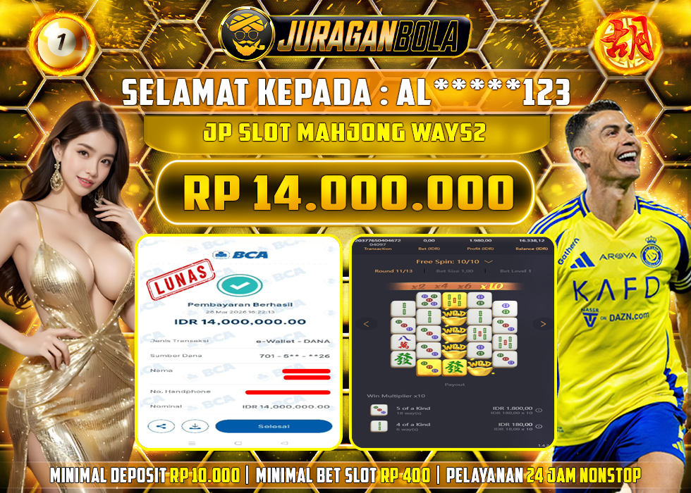 Selamat kepada user id: AL*****123 telah berhasil mendapatkan kemenangan pada permainan MAHJONG WAYS2 dengan kemenangan sebesar Rp.14.000.000, Setelah mengisi formulir withdraw dengan kurang waktu 3-10 menit pihak JURAGANBOLA sudah melakukan transfer kepada pemilik userid dan dana sudah dapat dicairkan oleh pemenang. Bukti pembayaran yang kami berikan merupakan bukti pembayaran yang SAH / VALID yang langsung didapatkan melalui tanda transfer transaksi dari bank resmi indonesia.